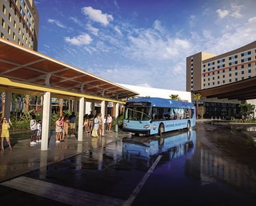 Os hóspedes dos hotéis da Universal tem várias maneiras para chegar aos parques.